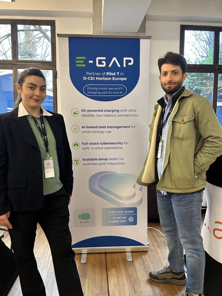 This proactive approach was most visible at Busworld Europe 2025, in October, where E-GAP featured O-CEI’s marketing materials and a specific poster and flyer detailing Pilot 7’s V2G technologies at their dedicated stand.