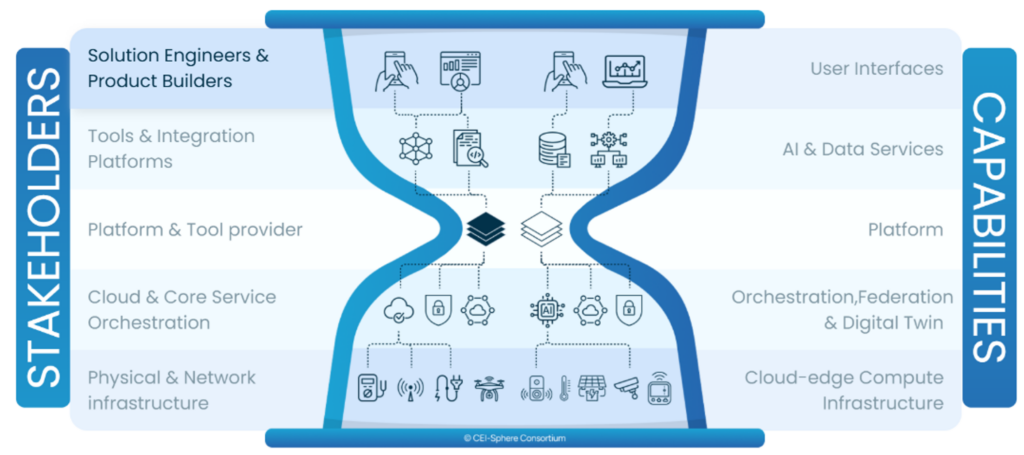 The following link describes the Hourglass Model and its application to the CEI ecosystem in the CEI-Sphere project: https://ceisphere.eu/hourglass-model.